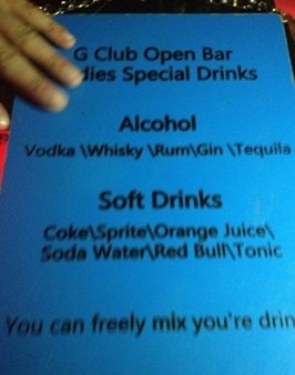 Global Club酒吧位于五道口商业核心的东源大厦B1层,营业区域达1200平米,包括舞池、吧台、18个卡座、12间KTV包间,每晚21点30分开始营业,一般23点30分是最热闹的时候。消费人群主要是学生和韩国人。其中,12个KTV包间是以12星座命名的,每个包间门口都有一个专门的服务员提供服务。李天一一行人17日(周日)选择的是该酒吧最大最豪华的包间——天蝎座。天蝎座平时的最低消费是1550元,周末是1880元。据工作人员透露,李天一等人是直接付了钱进去的,当日的消费主要是大量的洋酒套餐,但具体消费金额不便透露。至于客人是否为未成年人,他们也不清楚。从价目表上可以看出,酒水套餐最低500元,最高达36800元。 |